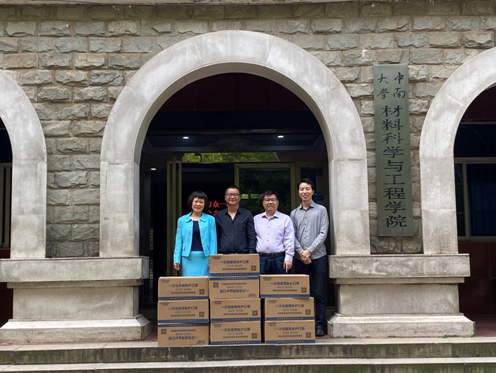 4月17日上午,长沙升华微电子材料有限公司负责人专程来到特冶楼,向公司员工捐赠医用口罩1万只,以支持公司师生的疫情防控工作。公司党委副书记胡小清、副经理徐国富、学工办主任蔡圳阳代表公司接受捐赠,并对公司的善举表示感谢!