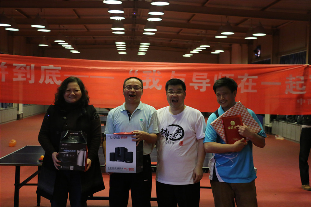 经过一下午的激烈角逐,教师组单打冠亚季军分别为:尹登峰老师、孟力平老师、李红英老师;员工女子单打冠亚季军分别为:刘娜、徐娇、沈玉婷;员工男子单打冠亚季军分别为:姜大越、周小杰、刘磊;团体赛冠亚季军分别为:尹登峰老师团队、林高用老师团队、孟力平老师团队。