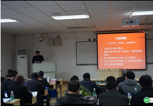 胡小清主席所作的工会报告,认真总结了2016年度部门工会工作取得的成绩、进步和体会;孟力平副主席简要报告了部门工会经费使用情况及有关提案办理情况。