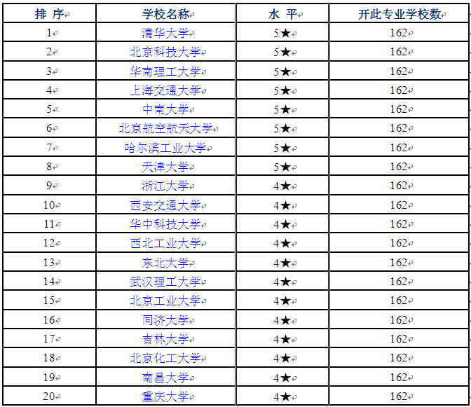 2016-2017年材料科学与工程专业排行榜前20强