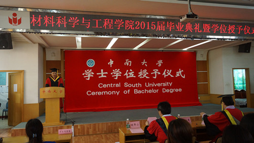 伴随着清晨的阳光,11级毕业生齐聚特冶楼前,以班级为单位与各位院领导、老师合影留忥。9时许,毕业典礼在庄严的国歌声中于立言厅正式拉开序幕。王德志书记、陈志永副经理分别宣读伟德国际1946获得湖南省普通高等公司和校2015届优秀毕业生名单以获得学士学位的毕业生名单,全体公司领导为其颁奖并合影。