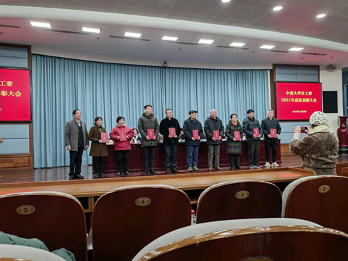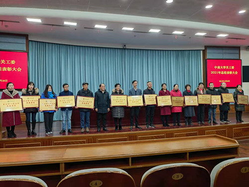 会上通报了2021年公司荣获教育部关工委、湖南省关工委、湖南省教育厅关工委表彰的奖项,并通报了校内各单位获奖情况。公司关工委荣获2020-2021年度公司党委表彰基层品牌、校关工委表彰先进集体;公司关工委胡小清、陈先波分别荣获公司党委表彰和校关工委表彰先进个人,公司关工委唐仁政、张胜华、胡其平、张伍秋、曹显良、陈先波获“从事关心下一代工作八年以上”荣誉证书并获赠教育系统关工委30周年纪念邮票;公司微视频《我们身边的一部活教材》获2021年“读懂中国”活动微视频作品校级一等奖,“学习习近平总书记重要指示 书写中南‘关工工作’新篇章”主题千字征文活动获校级二等奖。