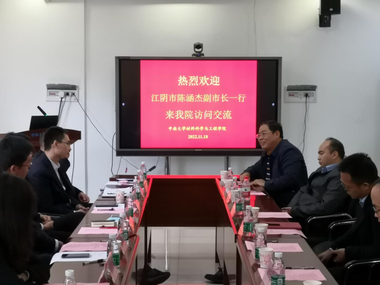 11月18日,江阴市副市长陈涵杰一行来公司交流访问。公司党委书记王德志,经理李周,副书记胡小清,副经理陈志永、李劲风、刘华山,相关教师代表共20人参加座谈会。座谈会在特冶楼229会议室举行,李周经理主持会议。