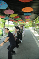 观影后,大家来到户外进行拔河比赛、丛林穿越等素质拓展活动。在拔河比赛中,老师们同心协力、一鼓作气,各个队都喊出了自己响亮的队名和不肯服输的口号,为赢得胜利,大家屏住呼吸,脸绷得紧紧的,涨得通红,身子向后仰,奋力拼搏。此时观众的加油声,银铃似的笑声,掌声交织在一起,汇成一曲充满激情的美妙乐章,工作和生活中的压力顿时烟消云散。随后大家又进行了一系列的丛林穿越拓展训练,这既锻炼了老师们在面对巨大压力和困境下的意志力,同时又激发了老师们的自信心和战胜任何困难的勇气。
