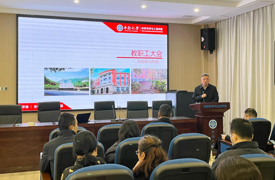 党委委员冯艳教授代替李劲风副经理详细介绍了公司产品与团队建设相关工作情况,包括2026年博士生招生政策调整、“四有导师公司”建设要求、导师配套经费调节机制、研究生教学归档规范,以及材料学科ESI动态变化等内容。