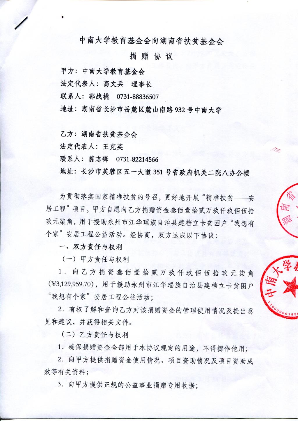 2、伟德国际1946官网教育基金会向湖南省扶贫基金会捐赠协议