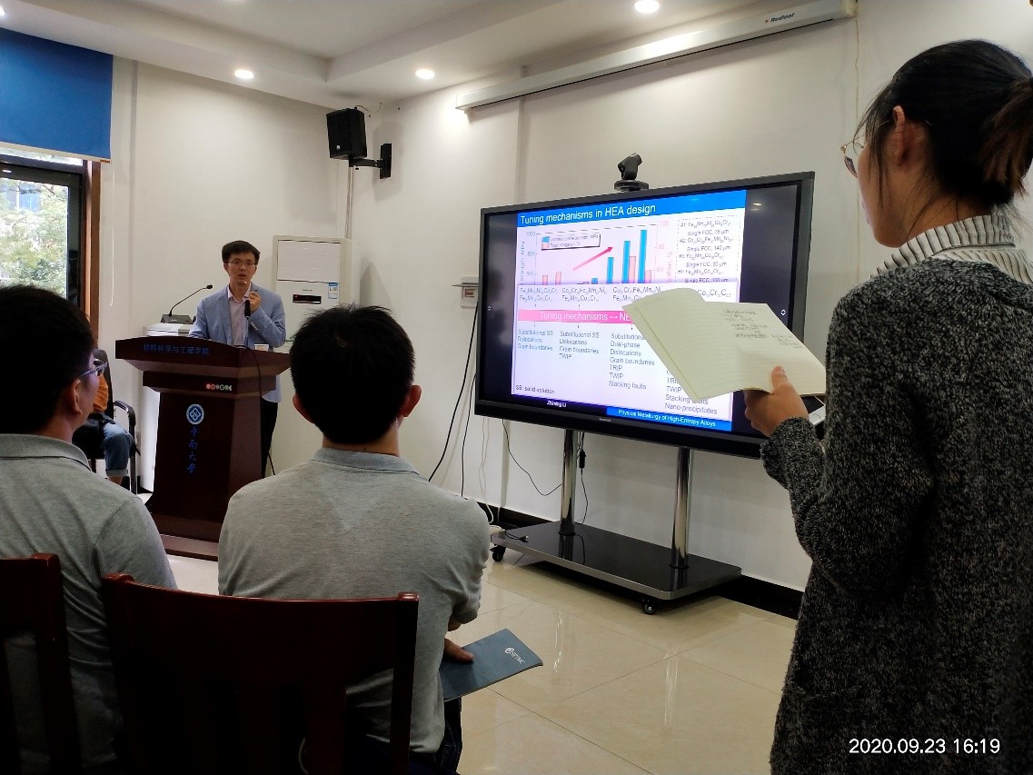 对于新学期的第一场讲座,特聘教授李志明以“高熵合金物理冶金进展”为题作了精彩的学术报告。本次报告首先介绍高熵合金思路的起源和基本定义等,然后进一步具体介绍其物理冶金的最新进展,包括稳定型与亚稳型高熵合金的设计准则、亚稳高熵合金的双向相变机制、间隙高熵合金的相稳定性与变形机理、高熵合金的多级纳米析出行为与纳米双析机制、以及新型超高强韧“晶体-非晶”复合高熵合金的开发等。