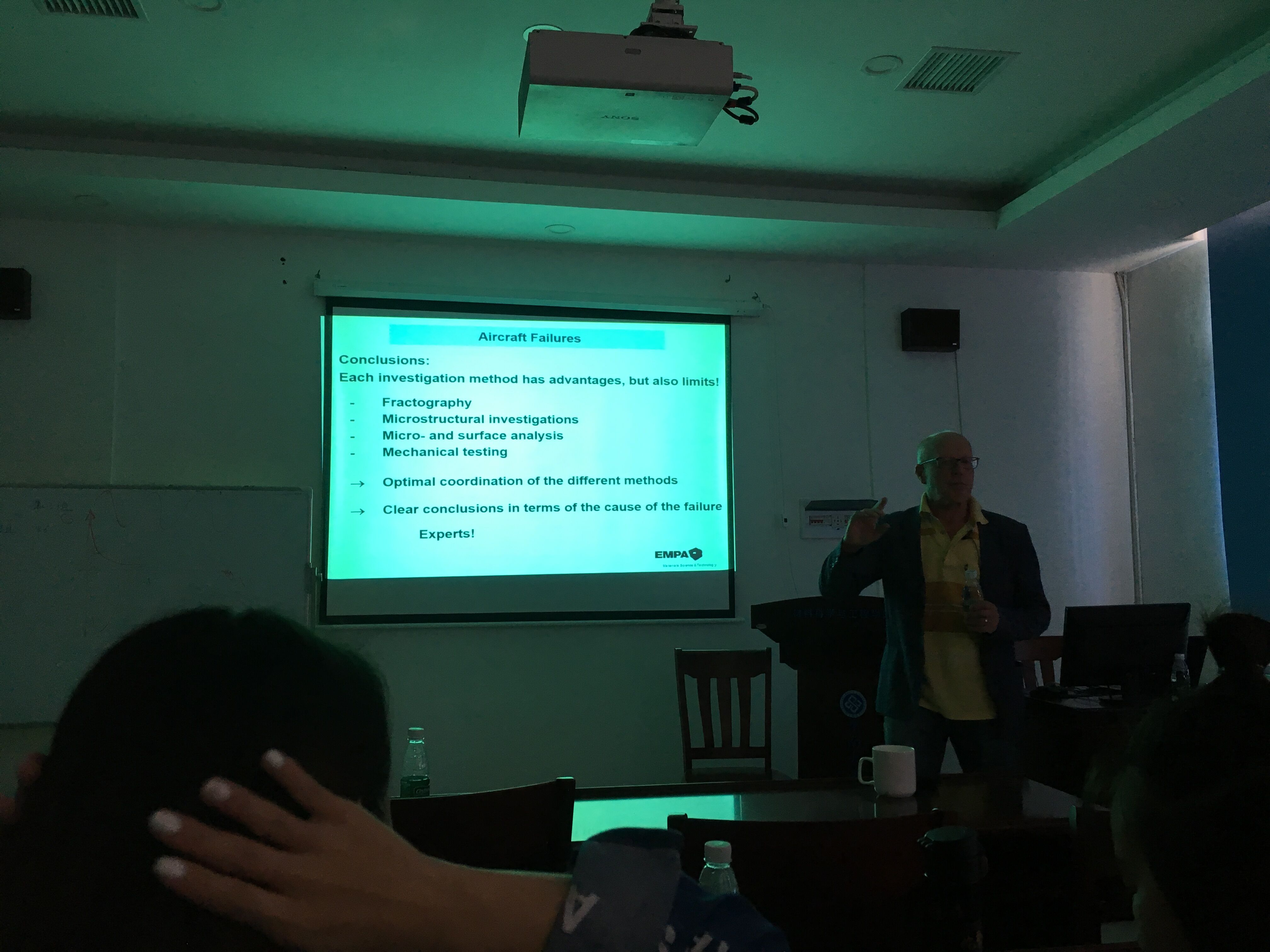上午9:00,来自瑞士苏黎世联邦理工公司的Prof. M. Roth做了题为“Failures in Aircraft-Structures”的学术报告。报告中,Prof. M. Roth针对Failures in Aircraft-Structures提出了晶相、显微结构的调查、微观和表面分析和机械测试等调查方法。说明了各种方法的优点和局限性,对不同方法进行最佳协调,对局限性的原因有明确的结论。