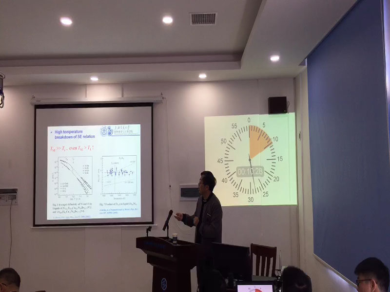 本次报告会题目为“Workshop on computer simulation of glassy materials”,3月27日,报告会伊始,冯艳老师首先致会议欢迎辞。第一场会议由张博主持,管鹏飞、韩秀君、袁晨晨、候兆阳作了有关金属玻璃异质性等报告;第二场会议由管鹏飞主持,芝隼人、于海滨、李松作了有关低维系统下融化晶体的动态模拟研究等报告;第三场会议由于海滨主持,孙昭艳、王毅、田泽安、王庭、李冬冬、于春燕作了有关Cu50Zr50薄片的原子结构和动态性能等报告。3月28日,第一场会议由Hayato Shiba主持,张博、王军强、彭海龙作了有关形态退火过程中金属玻璃的多阶段松弛等报告,第二场会议由韩秀君主持,彭平、莫云飞作了合金熔体的局部原子形态表征及其应用等的报告。 每一场报告结束后,报告人与在场师生进行了热烈的交流,细心回答了员工与老师提出的问题,现场气氛十分热烈。至此,十八场的精彩报告圆满结束。