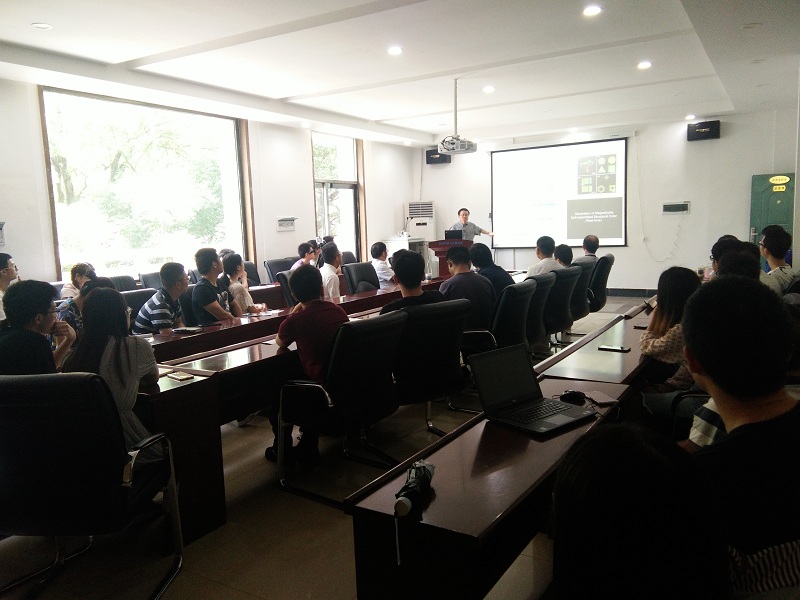 本次报告会题目为“Smart Materials by Nanoscale Assembly”,报告会上,殷亚东教授重点介绍了可用于印刷,传感,标牌,安全文件和显示器等处的具有光学响应特性的纳米结构材料,以及目前团队在制备各种纳米结构材料的化学和组装方法方面取得的最新进展。这些纳米结构材料的光学性质可以通过控制纳米级积木的空间排列进行动态调整,而许多新型光学材料则通过控制衍射、折射、双折射和电子共振来控制光和纳米结构之间的相互作用。报告结束后,殷亚东教授与在场师生进行了热烈的交流,细心回答了员工与老师提出的问题,现场气氛十分热烈。