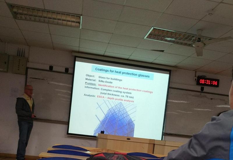 报告会题目为“Problem Solving and Failure Analysis by Auger and ESCA”,Manfred. Roth博士详细讲述了表面及界面存在的问题,及其分析方法。用俄歇电子及其X射线进行检测,得出了一些结论。用索道轴承断裂作为案例进行分析,展示了轴承断口照片,分析了裂纹产生、分布等原因,解释了轴承疲劳断裂时产生的三个疲劳区域原因。在讲解过程中Manfred. Roth博士结合丰富的肢体语言与同学们积极互动。报告结束后,Manfred. Roth博士与在场师生进行了热情的交流,细心回答同学们提出的问题,并鼓励同学们要刻苦努力,多动脑筋,勤思考。全场掌声热烈不断。
