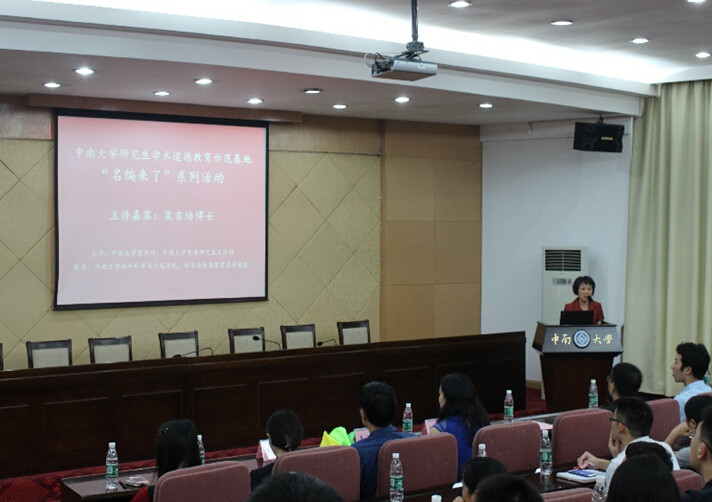 此后,袁主编做 “Wiley材料科学期刊论文发表---如何提高稿件的接受率”报告。她介绍了Wiley旗下的Advanced Materials、Advanced Functional Materials、 Small、Advanced Energy Materials等期刊发展状况。她重点介绍了论文评审流程以及投稿注意事项,从编辑对稿件的要求、投稿信和如何进行修改等多个方面,分享她作为编辑的经验和心得,并提出了一些如何提高稿件接受率的中肯建议。谈到学术诚信时,她详细介绍了编辑如何判断抄袭、剽窃及相应的处理办法等。最后,她建议大家选择合适的期刊发表论文,提高英文写作的技巧,坚决抵制学术不端行为,并预祝大家有更好的成果发表。报告结束前,在座师生纷纷与袁编辑交流互动,袁主编一一热心解答。