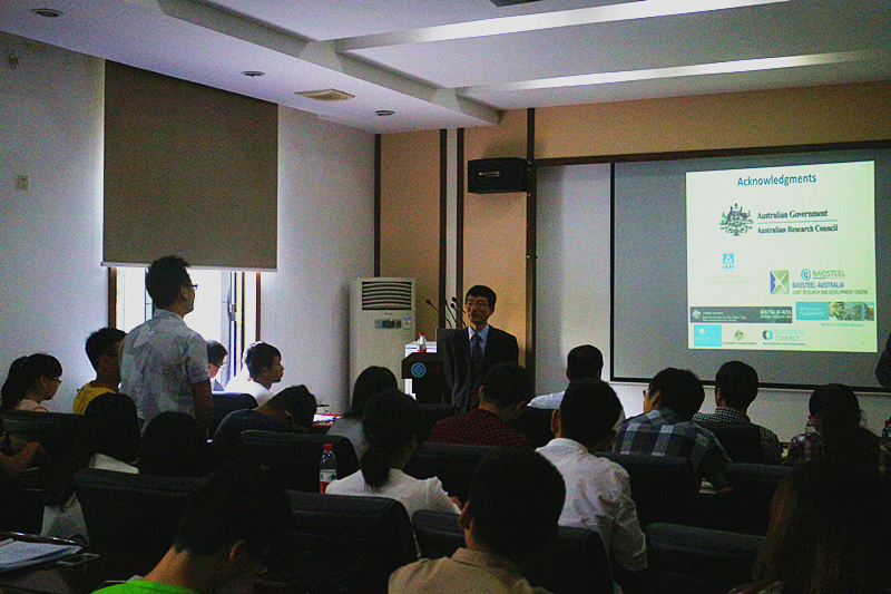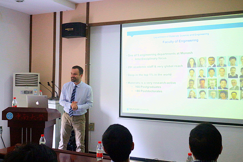 Nick Birbilis教授报告的题目是“Some contemporary issues in the corrosion of aluminium alloys”。Nick Birbilis 教授首先简单介绍了他所在实验室的概况,随后开始从研究目的、检测方法以及晶界变化三个方面详细介绍AA2050铝合金的耐点蚀和晶间腐蚀性能。AA2050铝合金因其质量轻,屈服强度高且腐蚀速率低而被广泛关注。研究过程中Nick Birbilis教授利用极化曲线表征了合金的耐腐蚀性能,同时AA2050在不同热处理制度下的点蚀和晶间腐蚀行为的研究,并检测到合金钝化之后电极电位变化的有趣现象。在AA2050铝合金的冲击试验中还发现断面的Cu/Al比远远高于合金以及边缘的现象。在介绍自己的研究时Nick Birbilis 教授还不忘给初涉研究领域的在场员工给出一些切实的建议,如做研究是一件持之以恒的事,要试着实践自己的点子以及多做实验等等,获得了老师和同学们热烈的掌声。