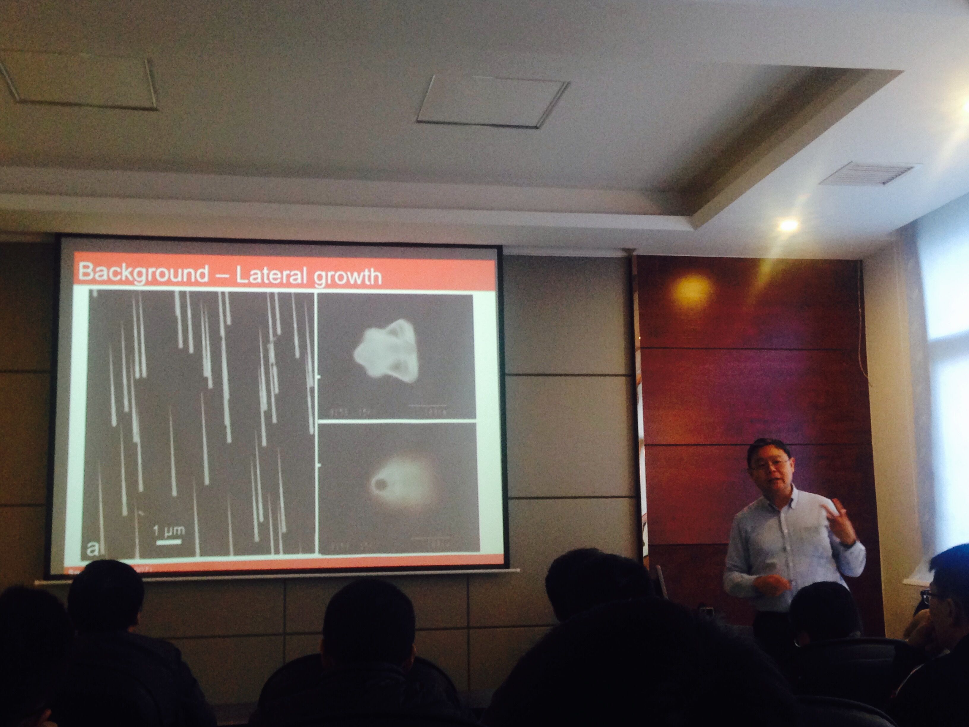报告会由梁叔全经理主持,有包括齐卫宏教授、张鸿教授、吴壮志讲师等在内的老师和数十名研究生到场参加,报告会的题目为“催化剂对外延III-V族半导体纳米线生长的影响”。