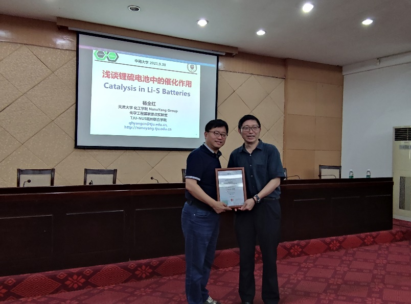 报告结束后,杨全红教授与在场的师生进行了热烈的交流,细心地回答了参与人员提出的问题,为大家答疑解惑,现场气氛十分活跃。最后,杨全红教授与梁叔全教授一起合影留念。