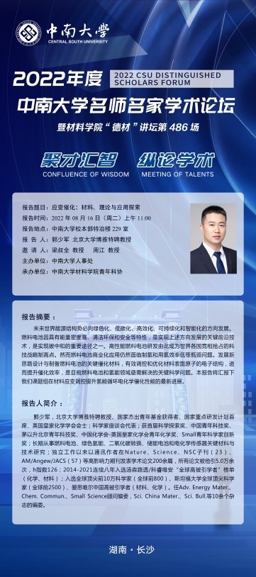 郭少军,北京大学博雅特聘教授、国家杰出青年基金获得者、国家重点研发计划首席、英国皇家化学学会会士;科学家座谈会代表;获首届科学探索奖、中国青年科技奖、 茅以升北京青年科技奖、中国化学会英国皇家化学会青年化学奖、Small青年科学家创新奖;长期从事燃料电池、绿色氢能、二氧化碳转换、储能电池和电化学传感器关键材料与技术研究;独立工作以来以通讯作者在Nature、 AM/Angew/JACS ( 57 )等高影响力期刊发表学术论文200余篇,所有论文被他引5.0万余次, h指数126 ; 2014-2021连续八年入选汤森路透/科睿唯安全球高被引学者”榜单 (化学、材料) ;入选全球顶尖前10万科学家(全球前800 )、斯坦福大学全球顶尖科学家(全球前2500)、爱思唯尔中国高被引学者(材料、化学)。任Adv. Energy Mater. Chem. Commun.、Small Science顾问编委,Sci. China Mater.、 Sci. Bull等10余个杂志的编委。