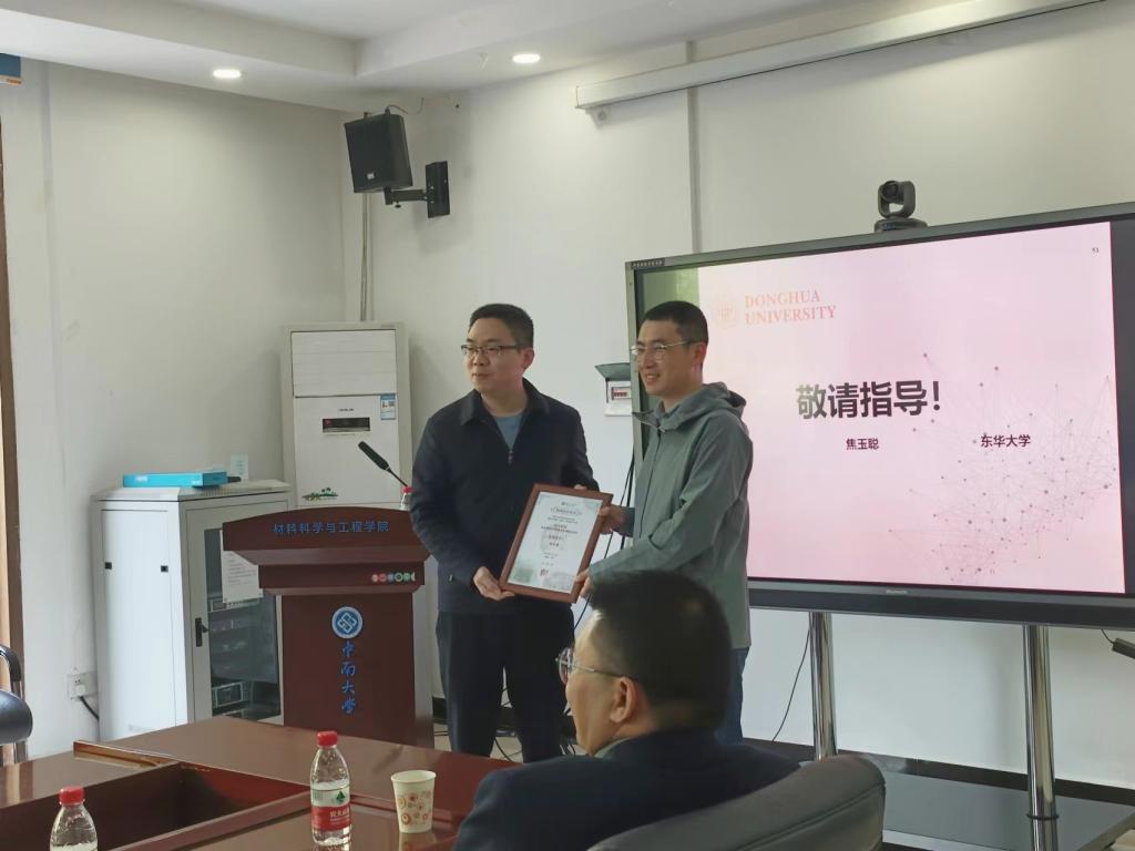 报告结束后,不少员工踊跃提出问题,焦玉聪研究员与现场师生进行了激烈的学术交流。最后由周江教授为焦玉聪研究员颁发证书。