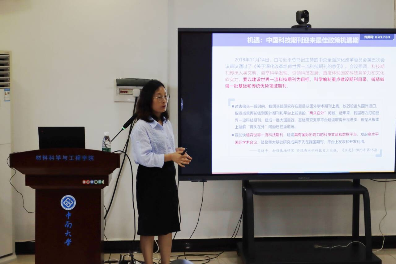 在本次讲座中,张学梅主要介绍了Science China Chemistry和Science China Materials杂志的发展现状、栏目设置、评审流程等基本情况。Science China Chemistry和Science China Materials是由中国科公司主管,中国科公司和国家自然科学基金委员会共同主办,《中国科学》杂志社出版发行的综合性化学期刊和综合性材料期刊。二者影响因子分别为9.6和8.1,均位居JCR分区Q1区。近年来发表了一系列高质量文章,展示了我国乃至全球化学和材料学科的诸多创新成果。先后入选中国科协“中国科技期刊国际影响力提升计划项目”、“中国科技期刊登峰行动计划项目”和“中国科技期刊卓越行动计划项目”等。