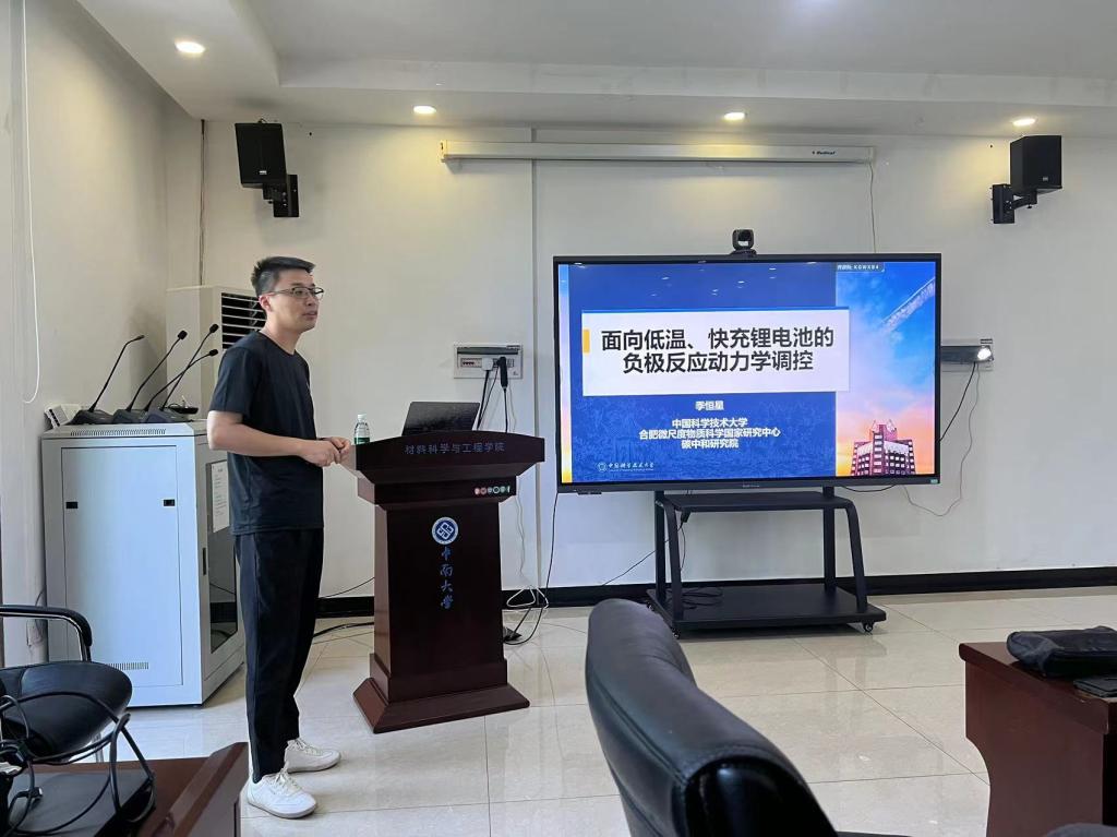 受伟德国际1946方国赵教授邀请,季恒星教授就“面向低温、快充锂电池的负极反应动力学调控”方面进行了学术报告。在本次报告中,季恒星教授针对锂离子电池的快充能力、低温容量保持率和能量密度等综合性能指标做了详细阐述,他指出,如今电动汽车和5G通信等多领域技术的持续进步对锂离子电池的上述性能指标提出了更高的要求,但受限于负极材料的电化学性质,电池的高能量密度和快充能力难以兼得。快速充电或低温工作时,负极极化加剧并迅速达到截止电压,致使电极容量无法发挥,电池能量密度降低;另一方面,负极极化容易导致金属锂析出,产生安全隐患。如何突破电极极化对快充、低温条件下电池能量密度和安全性的限制是目前电池技术面临的一个关键难题。之后,季恒星教授介绍了其课题组近年来在传统石墨负极材料、下一代磷负极材料和金属锂负极方面的研究进展。