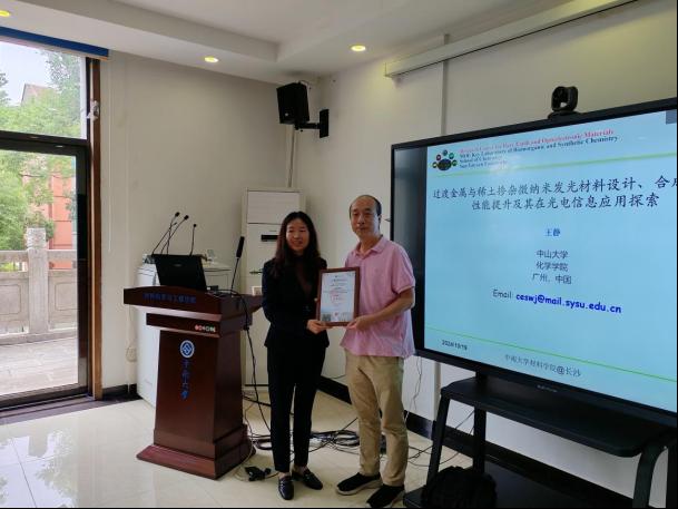 报告结束后,王静教授非常热情地回答了各位同学所提出的问题,并与在场师生展开了热烈的交流,学术氛围十分浓厚。最后由蔡格梅教授为王静教授颁发证书。