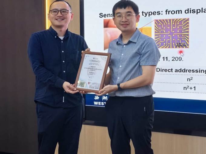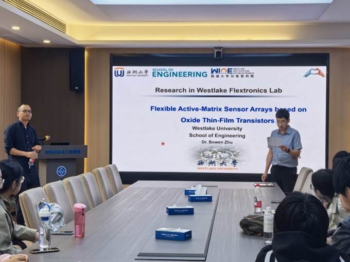 在本次报告中,朱博文教授就“柔性传感器(如压力、pH、温度、化学、生物传感器等)”进行了学术报告。朱博文教授指出,柔性传感器在电子皮肤、人机界面和健康监测等应用中发挥着重要作用。教授表示近年来,以IGZO(铟镓锌氧化物)为代表的金属氧化物半导体薄膜晶体管凭借其高光学透明度、大面积均匀性、良好的电学性能,以及可以通过低温甚至室温制备的工艺,在有源矩阵柔性传感器阵列中的新兴应用前景广阔。教授还介绍到薄膜晶体管(TFT)是构建大面积、高分辨率、有源矩阵柔性传感器阵列的核心电子元件。同时,薄膜晶体管背板则是一种可以构筑不同传感应用的通用平台,例如触觉、光电探测器阵列等。为此,朱教授围绕基于溶液法开发高性能氧化物半导体材料和薄膜晶体管器件的方法以及如何使用薄膜晶体管背板构建相关的柔性有源矩阵传感器阵列等为我们带来了精彩的讲解。