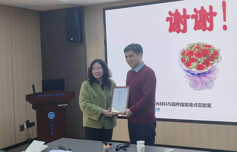 报告结束后,夏志国教授非常热情地回答了各位同学提出的问题,并与各位师生展开了热烈的交流,学术氛围十分浓厚。最后由蔡格梅教授为夏志国教授颁发证书。