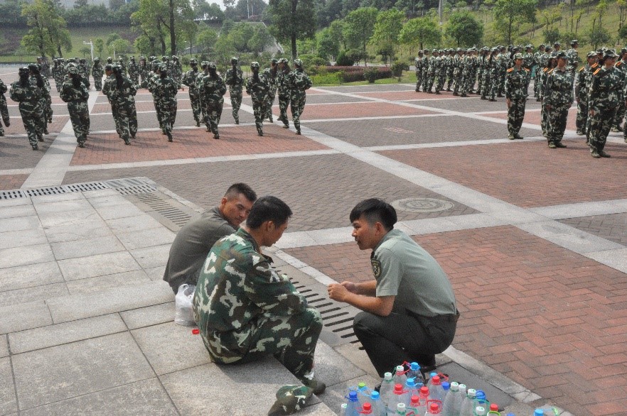 9月20号,离最后的汇报演出越来越近了。从教官到员工,所有人都在咬牙坚持着。苦训,一如既往。军姿一站就是半小时,可他们从没有抱怨过。站到嘴唇发白,教官看到了赶紧把他拉出了队伍,到一旁休息,可是他却摇着头说教官,我没事。终究抵不过教官和辅导员关心的眼神,他坐在一旁休息。