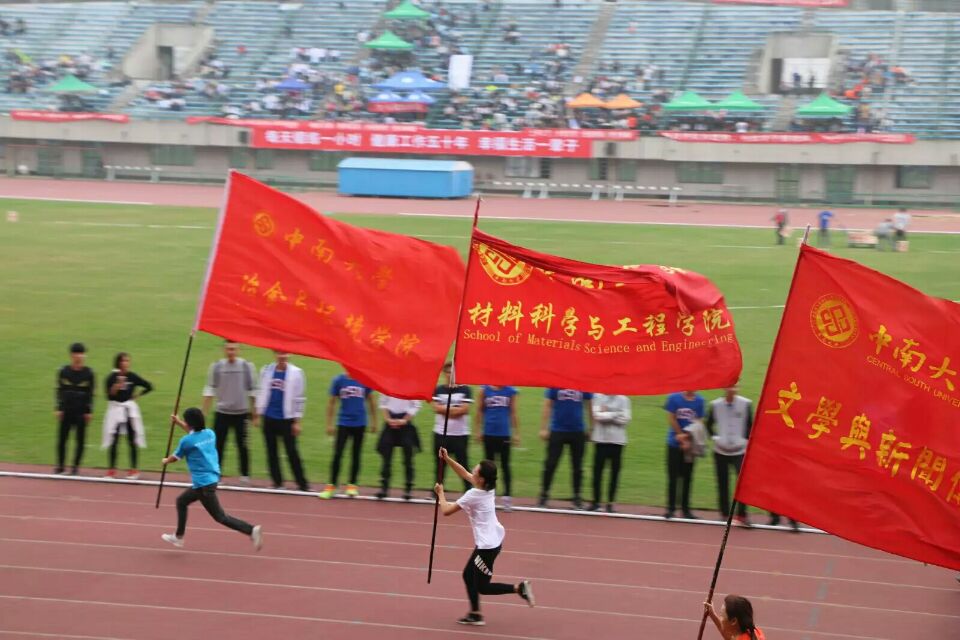 在院旗接力比赛中,材料院的运动员们斗志高昂,紧张有序,观众席上的材子材女们也助以热情的呐喊加油。院旗随风舒展,在风中猎猎作响,格外明艳耀眼。
