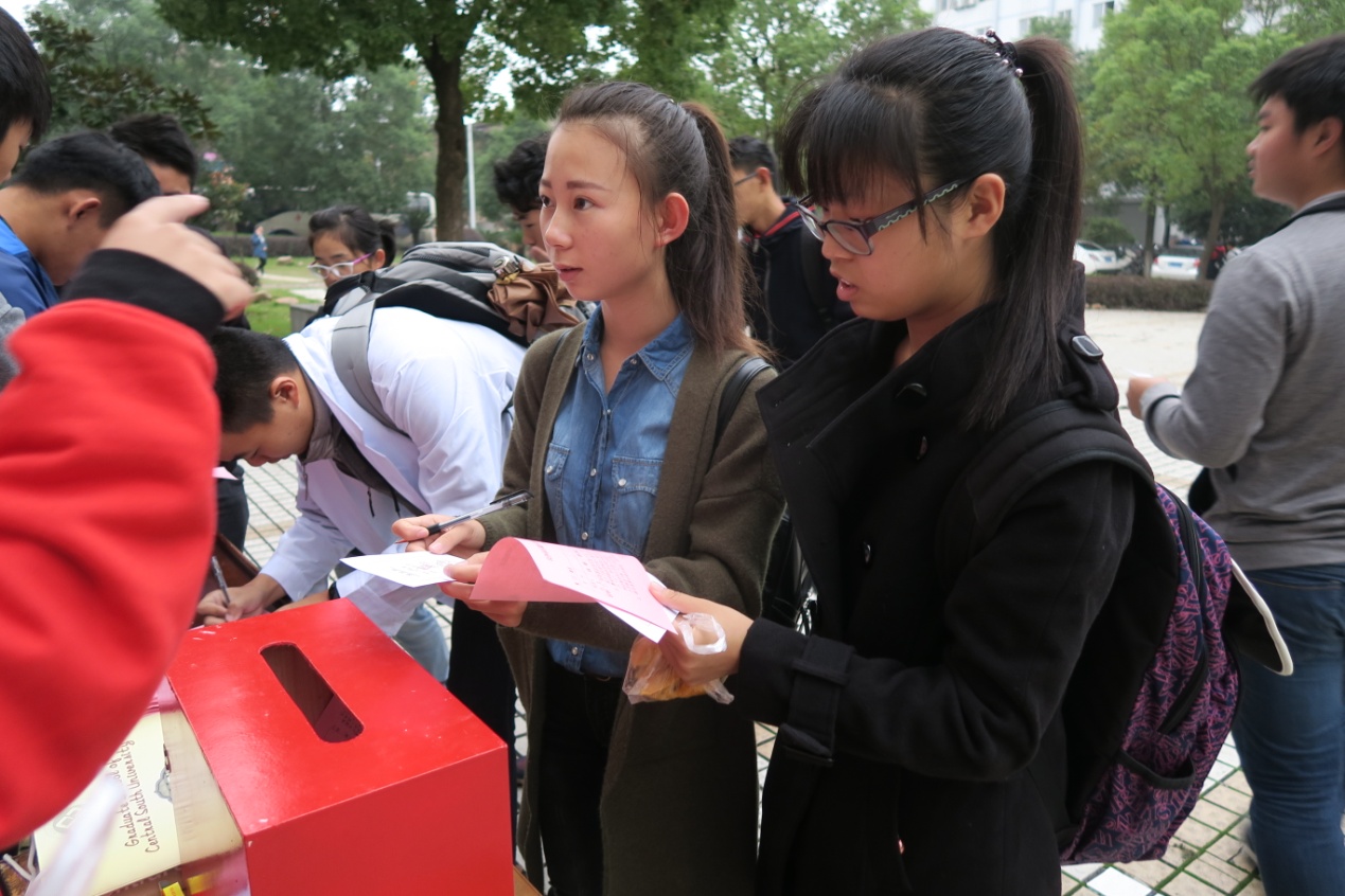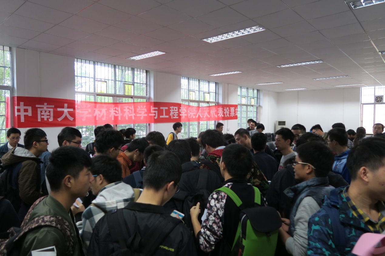 上午8点,投票工作准时开始,材料院在升华广场及校本部化学楼设立的两个投票站早已站满了选民。为保障选举工作的顺利开展,投票过程由材料公司党委书记王德志、工会副主席周亮、孟力平和学工办主任蔡圳阳分别担任本单位选举办公室主任、监票人、计票人和工作人员,辅导员彭需发、高阳等和院团学会干部现场维持秩序,并向选民们发放选民证。每一位选民排队领取选票、按照投票规则认真填写选票,最后将选票放入指定投票箱中,庄严地投出了自己神圣的一票。很多同学都为第一次成为选民而感到荣幸。