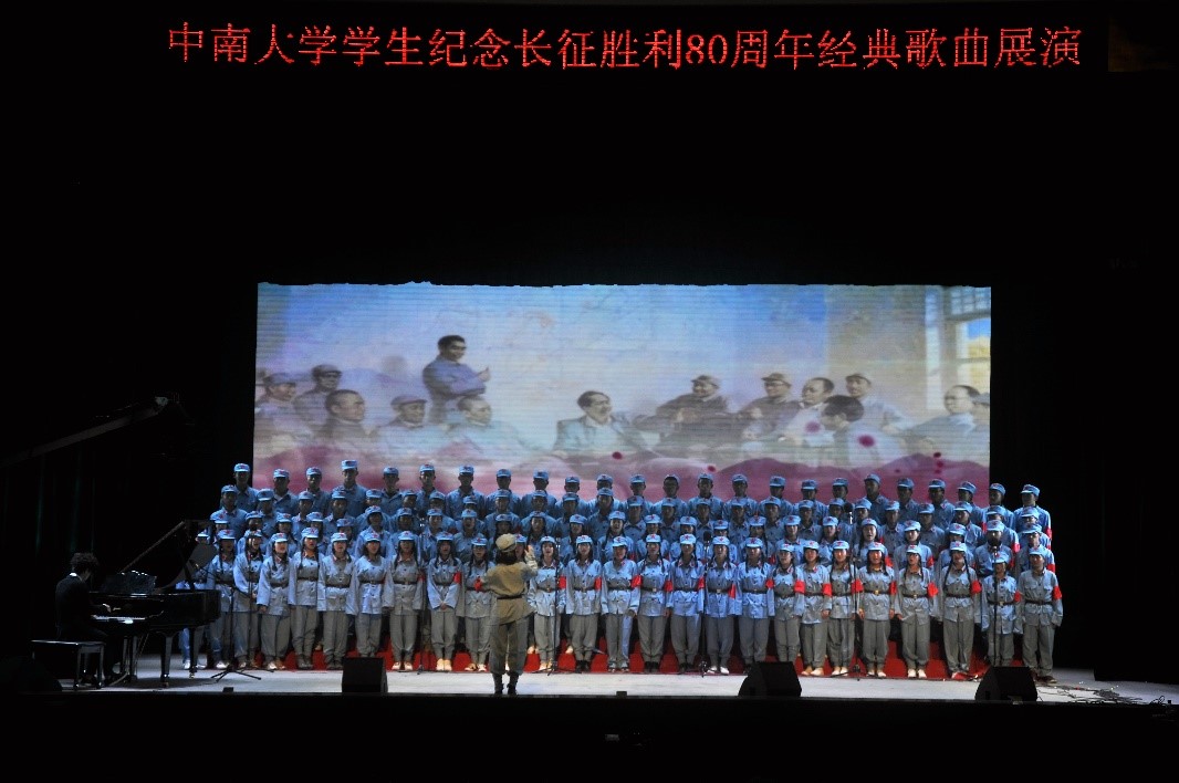 本次展演一共分为星火燎原、浴血荣光、苦难辉煌、人间正道和走向复兴五个部分。而材料院作为人间正道部分的压轴部分,合唱《解放区的天》。