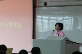辅导员杨露则在生活和学习方面对员工作出更细致的讲解。杨露表示,同学们独自离家求学,没有了父母的庇护,要更加重视安全问题,提高警惕性,保护好自己的人身和财产安全。在校要遵守公司规章制度,不迟到早退,不夜不归宿。在找兼职时要学会明辨是非,要通过正规渠道寻找合适的工作。在学习上,杨露说:“首先要考虑的是如何合格地毕业,其次,在合格毕业的基础上,再去思考如何创新,如何增强自己的竞争力。”她向新生们承诺,自己会和大家共同努力,一起成长。