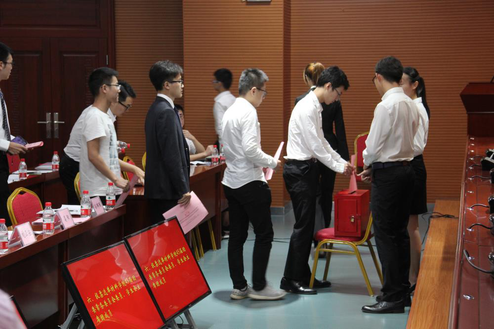 在短暂而忐忑的计票时间过后,总监票人孙玮琛宣布,第四十五届团委常务委员会和员工会主席团成员正式确定。优秀员工代表张博涵宣读倡议书,她倡议道:“材料院学子们应当不忘初心,勤奋学习,争做时代先锋。”会议最后,公司党委副书记胡小清为大会致闭幕词,提出了“四个感谢,四个祝贺,四个要求”,希望团委员工会能发挥好带头作用,抬头做人,低头做事,带领同学们迈上新的台阶。