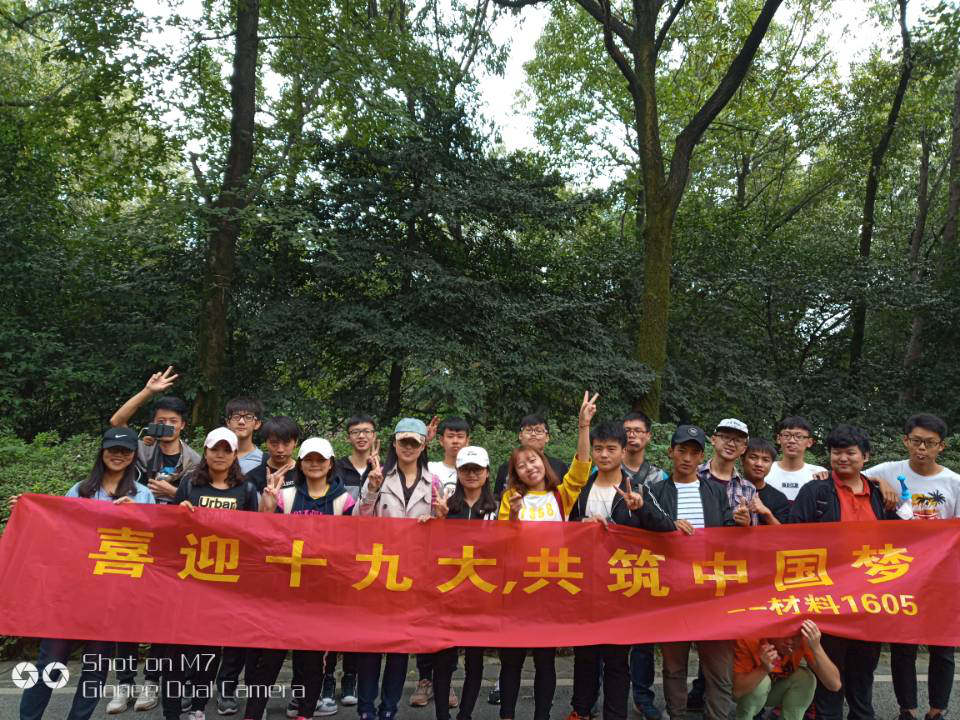 10月21日,为迎接十九大,感受革命气息,材料1605班举行了以“喜迎十九大,共筑中国梦”为主题的登岳麓高山,寻抗战遗迹活动。本次活动由团支书杨姣姣组织。