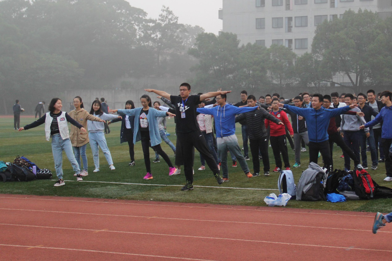 自活动开始之日起,每天上午7:00,同学们不仅准时到达操场而且到达的人数也较多,到达后学子们按班顺序站好。在同学们的欢声笑语中嘹亮的广播体操音乐响起,材料学子在领操人员的带领下,规范标准地完成每个动作。在锻炼的过程中,员工们渐渐褪去了身上略带的乏意,动作做得更加干练有力。活动开展期间17级辅导员杨露老师也不时会来陪同学们一起晨练,鼓励同学们更积极地投入锻炼。