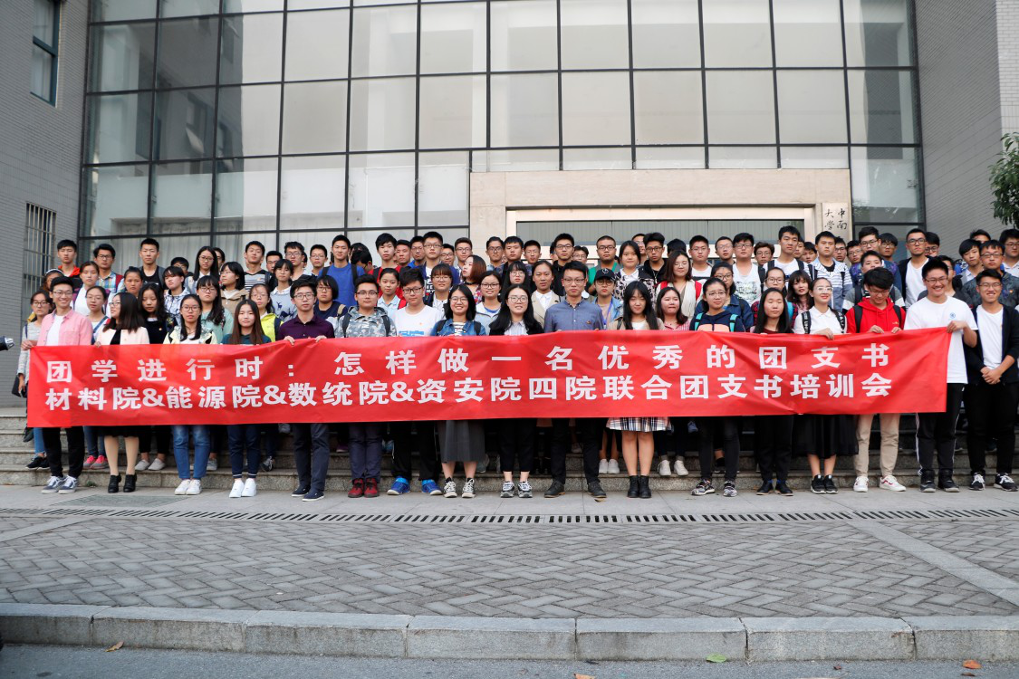 10月29日下午,材料院、能源院、数统院、资安院四院联合团支书培训会在新校区数统楼134报告厅顺利召开。数统院团委书记张婷,资安院团委书记侯霄峰,材料院、数统院、能源院、资安院团委员工会主席张博涵、何榕浩、张源媛、武秉剑,校团委组织部副部长翁劭圣同学以及17级全体团支书和部分15级团支书等人参加此次会议。材料院郭鑫瑶,资安院崔同革共同主持会议。