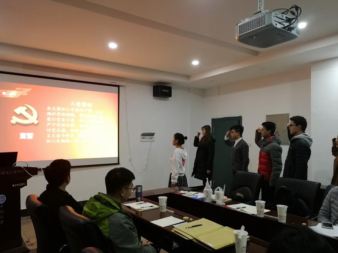 随后,李莹蕊、黄鑫港等5名发展对象依次上台自我介绍,自我剖析,正确认识自身的缺点与不足。对应的第一培养人或第二培养人逐一介绍其情况,发表意见。最后,李莹蕊、黄鑫港等5名发展对象全票通过成为中共预备党员,在乔磊磊副书记的带领下,宣读入党誓词。