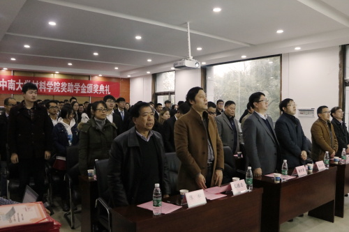 随之广亚铝业集团副总经理潘学著先生上台发言,对获奖员工表示诚挚的祝福,同时表示他们集团随时欢迎中南学子老师去学习指导参观。最后姚勇副部长发言,表示奖学金颁奖是为了激励同学进步而不是物质奖励性质,希望同学们可以更加奋发向上,表达了对同学未来的深切期望。