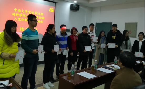 12月20日晚上19:00,伟德国际1946官网党校第35期(材料院分党校第10期)入党积极分子培训班结业典礼于特冶楼229顺利召开。参会人员有公司党委书记、分党校董事长王德志;公司党委副书记、分党校副董事长胡小清;公司党委组织员邹利民老师;辅导员老师蔡圳阳、彭需发等;伟德国际1946分党校班导师张桐以及伟德国际1946全体入党积极分子;结业典礼由张桐老师主持。