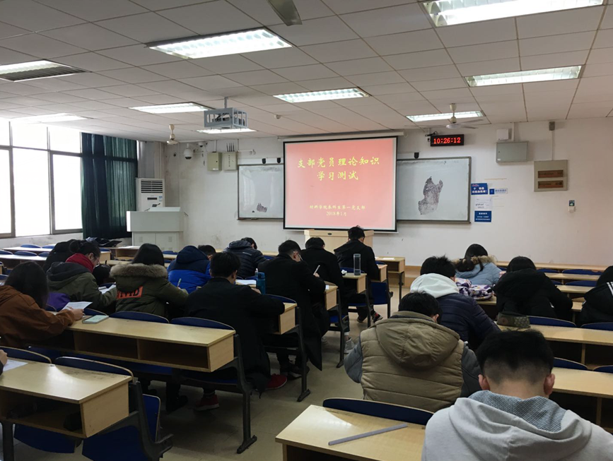 述职报告评议结束之后,对支部党员的近期理论学习进行了一次检测。党员基本理论知识考试,是本科生一支部每学期都要开展的一项支部活动,以考试的形式,得到支部同志这一阶段的理论学习的反馈,督促支部党员自觉学习理解理论知识,提高党性修养。