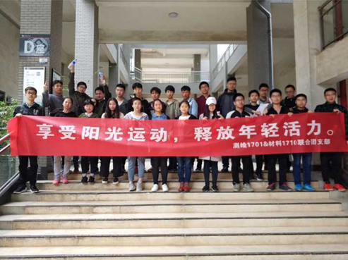 4月14日,材料1710,测绘1701联合团支部在南校区和新校区成功开展了“享受阳光运动,释放年轻活力”为主题的团日活动。