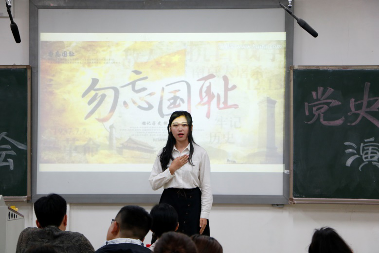 其中,董佳祺同学以史为鉴,警醒当代人铭记那份痛苦的同时,也要尊重历史,“勿忘国耻,振兴中华”。而胡明杰同学讲述了狼牙山五壮士之一——马宝玉的事迹,他通过反复不断对自我的责问,声情并茂地展现了一代烈士悲壮的场景,提醒着现在丰衣足食的人们莫忘先烈,英魂长存。马润梵同学则通过一件发生在南京城的爱情故事,以小见大,展示了抗战时期的温馨与残酷,以此警戒当世的人们。
