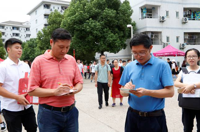 材料公司党委书记王德志,经理梁叔全,党委副书记胡小清及学工办老师们密切关注着迎新工作。他们既带来了对迎新工作人员的关怀,也参与了时空信箱的活动。他们在写下对18级新生的祝愿与期望的同时,也为新学期、新气象点赞。