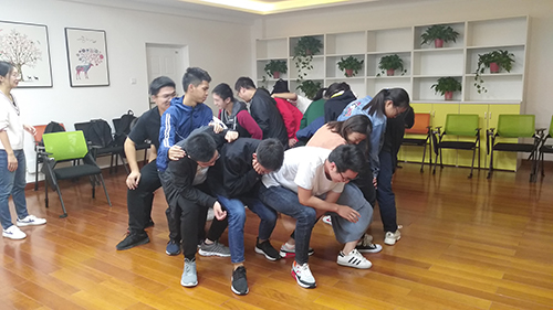 在齿轮转游戏中,刚开始同学们由于羞涩而有些拘谨,但在玩了一会儿后,大家便因为团队合作中活泼起来,辅导室内充满了同学们的欢笑声。在“妙手千千结”环节中,同学们互相发言提议更好的途径,最后通过协作从而取得成功。大家纷纷为自己与同学鼓掌。