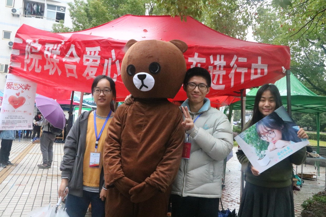 尽管活动当天阴雨连绵,但现场热烈的氛围没有受到丝毫影响,三院青志协成员秉持着“凝聚每一份爱,点亮每一颗心”的活动宗旨,通过不断地热情销售,收集并传递了更多的爱和温暖;同学们也十分热心积极地参与,以期能为公益事业贡献自己的一份力量,为孩子送去一份温暖。