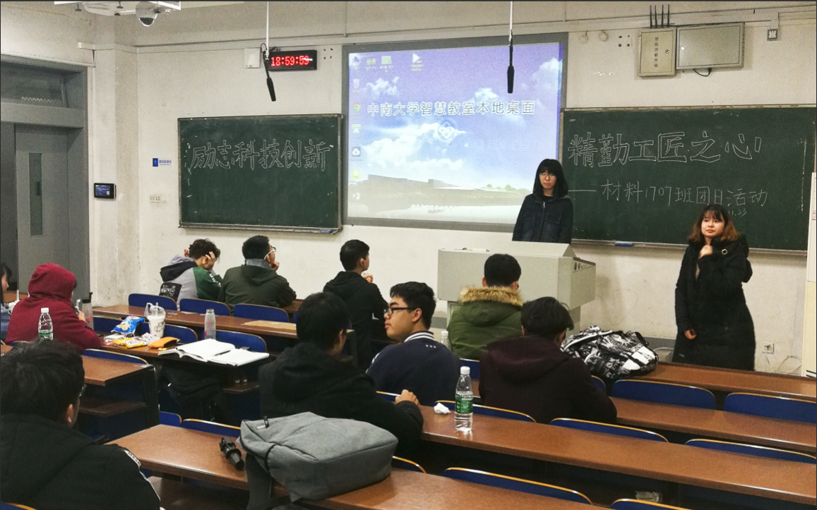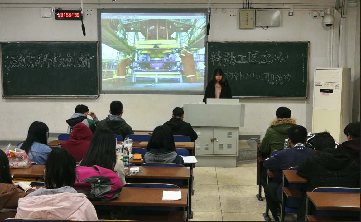 11月23日下午,材料1707班在新校区A座122教室成功举办了以“励志科学创新,精勤工匠之心”为主题的团日活动,活动结合前沿科技的创新进步与科研前辈的勤恳钻研向同学们展现了材料科学的学习方向与研究前景,旨在帮助同学们确立今后的学习、生活目标,从而更好的规划自己的未来。活动由材料1707班团支书刘馨竹主持。