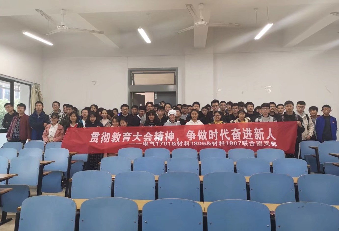 11月17日至25日,材料1806、材料1807、电气1701联合团支部策划并举办了以“贯彻教育大会精神,争做时代奋进新人”为主题的团日活动。本次活动共分为四部分:读书会暨动员大会,手工大会,福利院之行,联谊足球赛。