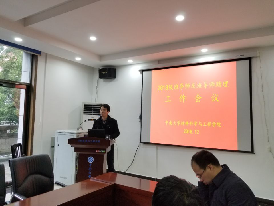 12月5日下午,材料院2018级班导师工作会议暨班导师助理受聘仪式在特冶楼229正式召开。材料公司党委书记王德志,学工办主任蔡圳阳出席本次会议,与会人员还有18级各班班导师,辅导员和班导师助理。蔡圳阳老师主持本次会议。