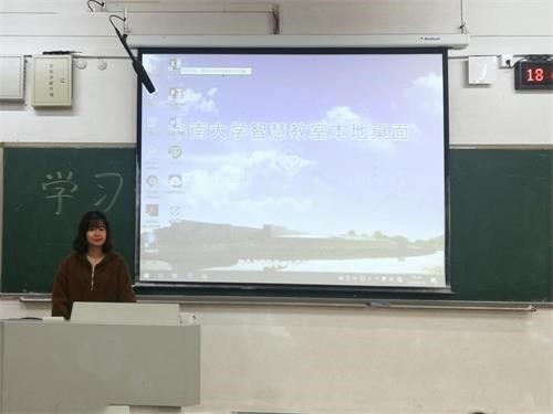 4月15日晚,材料1707班在新校A座117教室举办主题为“学习两会精神,争做有为青年”的班级活动。此次活动旨在向同学们传达两会思想,包括树牢“四个意识”,坚定“四个自信”,坚决做到“两个维护”等,并着重介绍其中与高等教育改革有关的部分。材料1707班的团支书刘馨竹同学主持这次的活动。