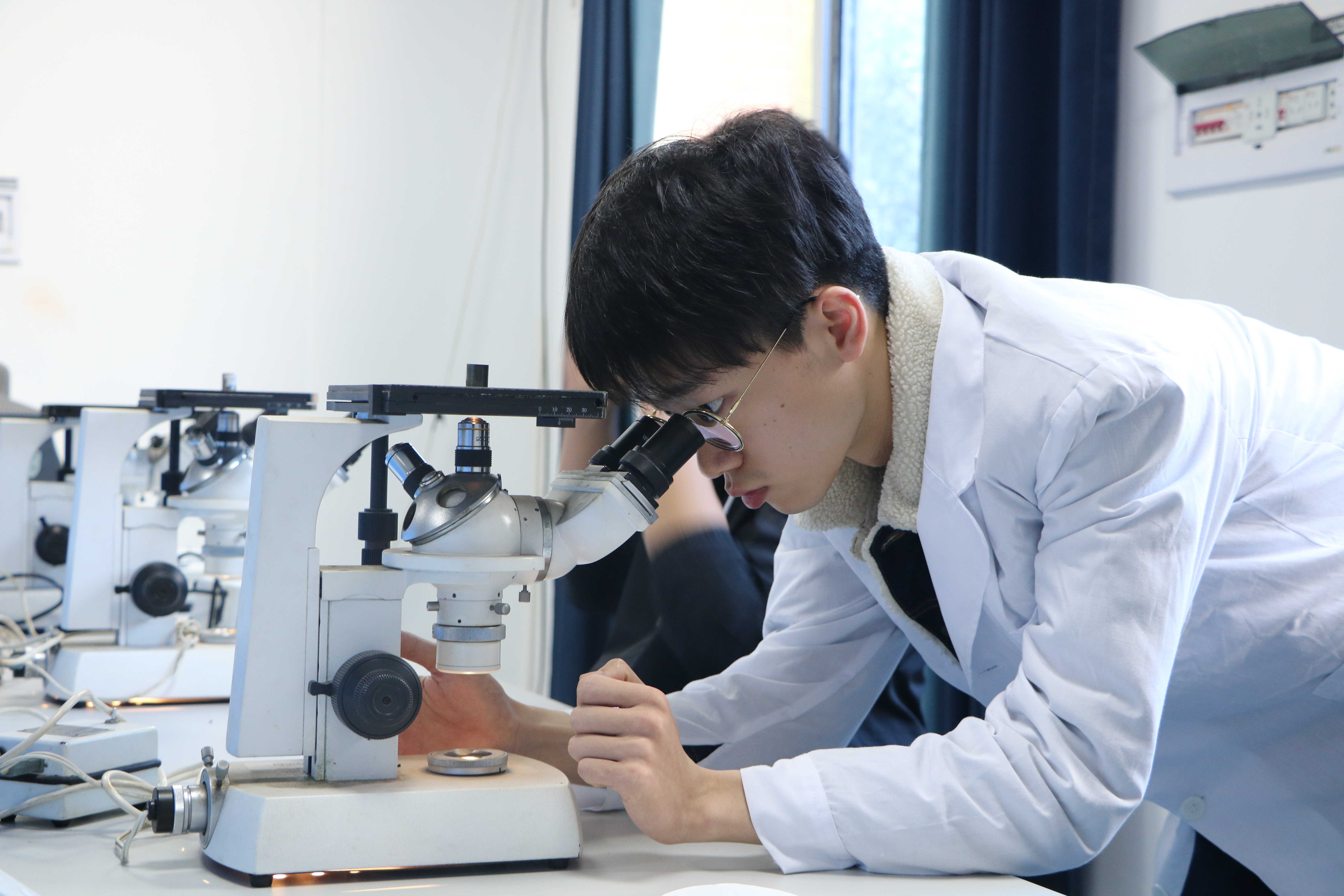 本次比赛吸引了材料院各年级同学踊跃参与。根据赛程,同学们被分为9个小组,在依次领取了材料后,选手们有三十分钟的时间对其进行打磨,抛光和腐蚀,并在显微镜下进行观察。比赛在紧张而有序的氛围中进行,每个环节中学长评委们严格按照细则对选手的操作细节评分,最后由评委老师对选手最终呈现的样品打分。最终成绩由比赛综合操作得分和样品得分组成。