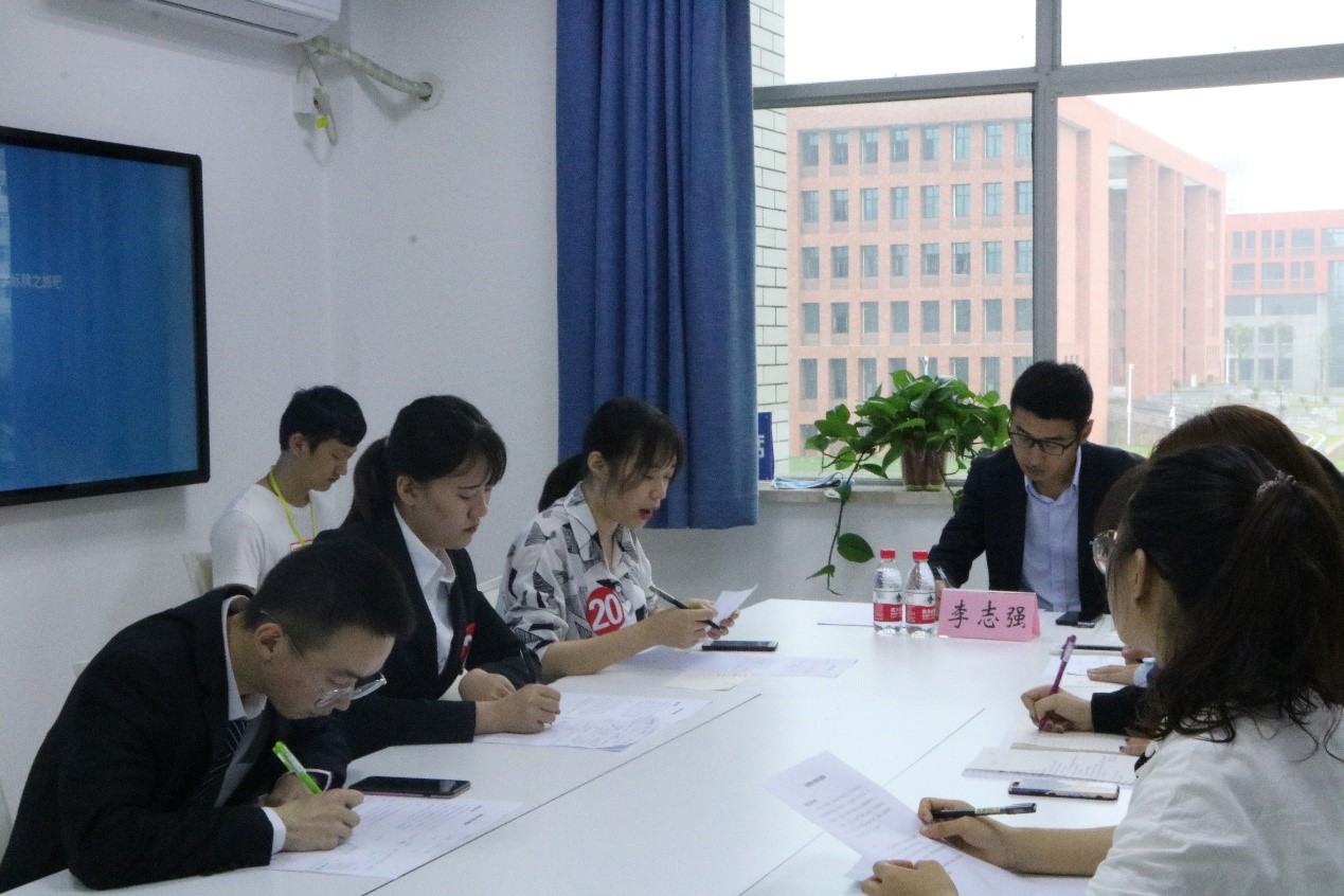 经过初赛筛选简历,复赛共有32位选手参加。根据求职意向,选手们被分为四组,以小组为单位进行多对多面试。自我介绍环节中,每位选手有九十秒的时间讲述自己的员工工作、实习经历和荣誉奖项等求职相关内容,评委们根据选手自我介绍提问。比赛中,评委毫不吝啬地向选手们传授面试技巧,对他们的发展提出建议,让选手和观众都受益不浅。第一轮最后,王亚坤女士致总结词,肯定了选手们的实力,并希望他们下午有更加优异的表现。